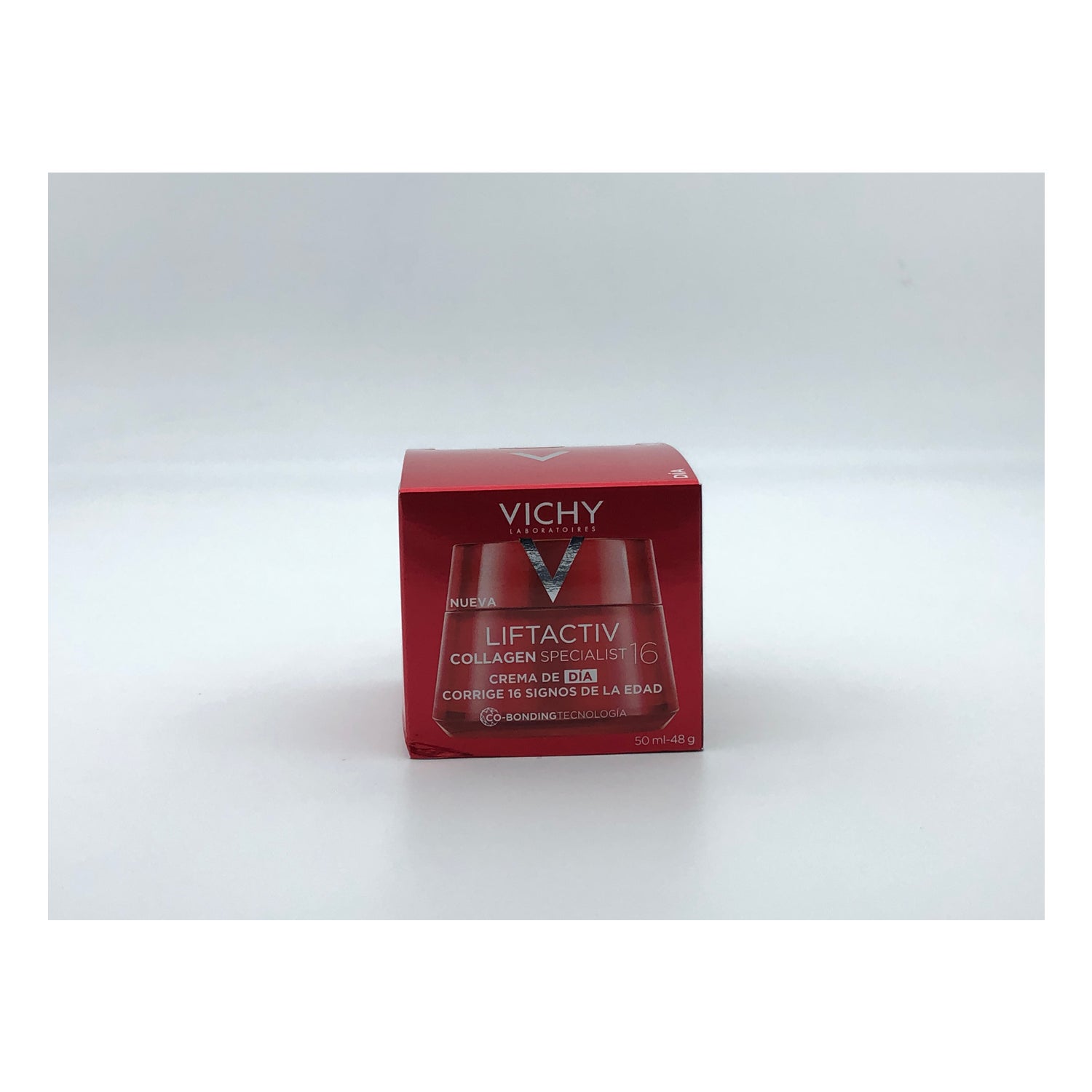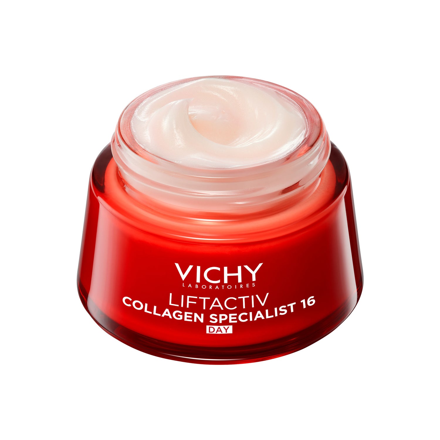 Vichy Liftactiv Collagen Specialist 16 Creme Anti-idade Dia 50ml é uma creme fluida para a zona sensível da pele do rosto, pescoço e colo que ajuda a manter a pele firme e elástica, enquanto favorece a proteção anti-envelhecimento.
