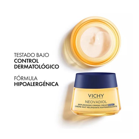Vichy Neovadiol Creme de Noite Pós-Menopausa 50ml é um creme de noite hidratante ultra-nutritivo e calmante. Este creme ajuda a melhorar a estrutura e a função celular da pele, reparando a sua barreira natural. Actua como uma camada protetora, mantendo a hidratação e afastando os radicais externos.