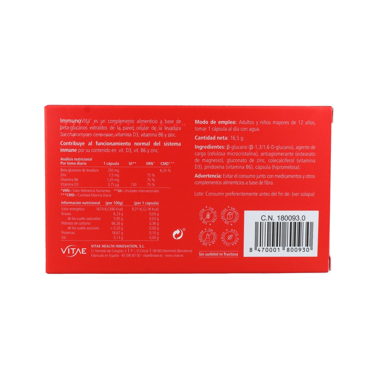 Vitae Immunovita 30caps é um suplemento alimentar com beta-glucanos, vitamina D3, vitamina B6 e zinco.