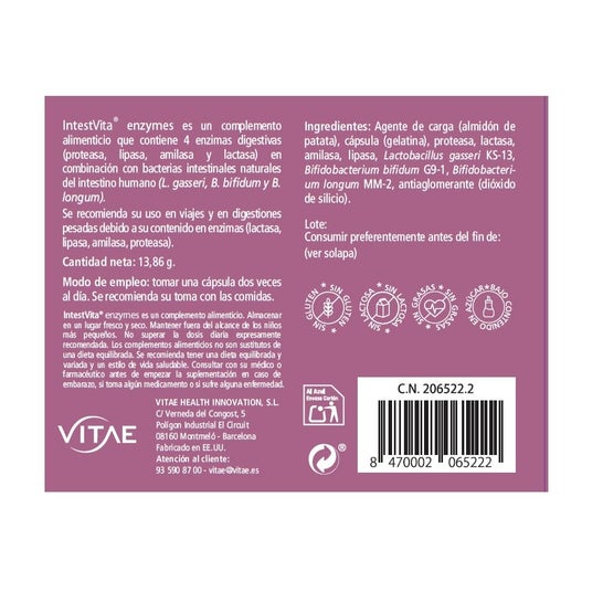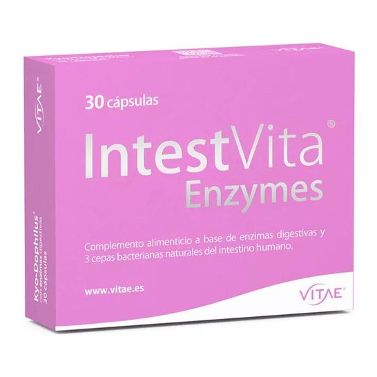 Vitae IntestVita Enzymes 30caps é um suplemento alimentar baseado em enzimas digestivas e 3 estirpes bacterianas naturais do intestino humano.