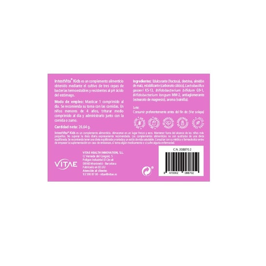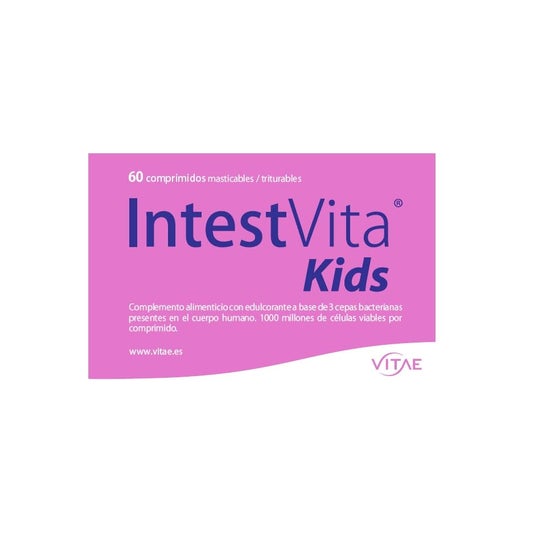 Vitae IntestVita Kids 60comp é um suplemento alimentar para crianças baseado em 3 estirpes de bactérias presentes no intestino.