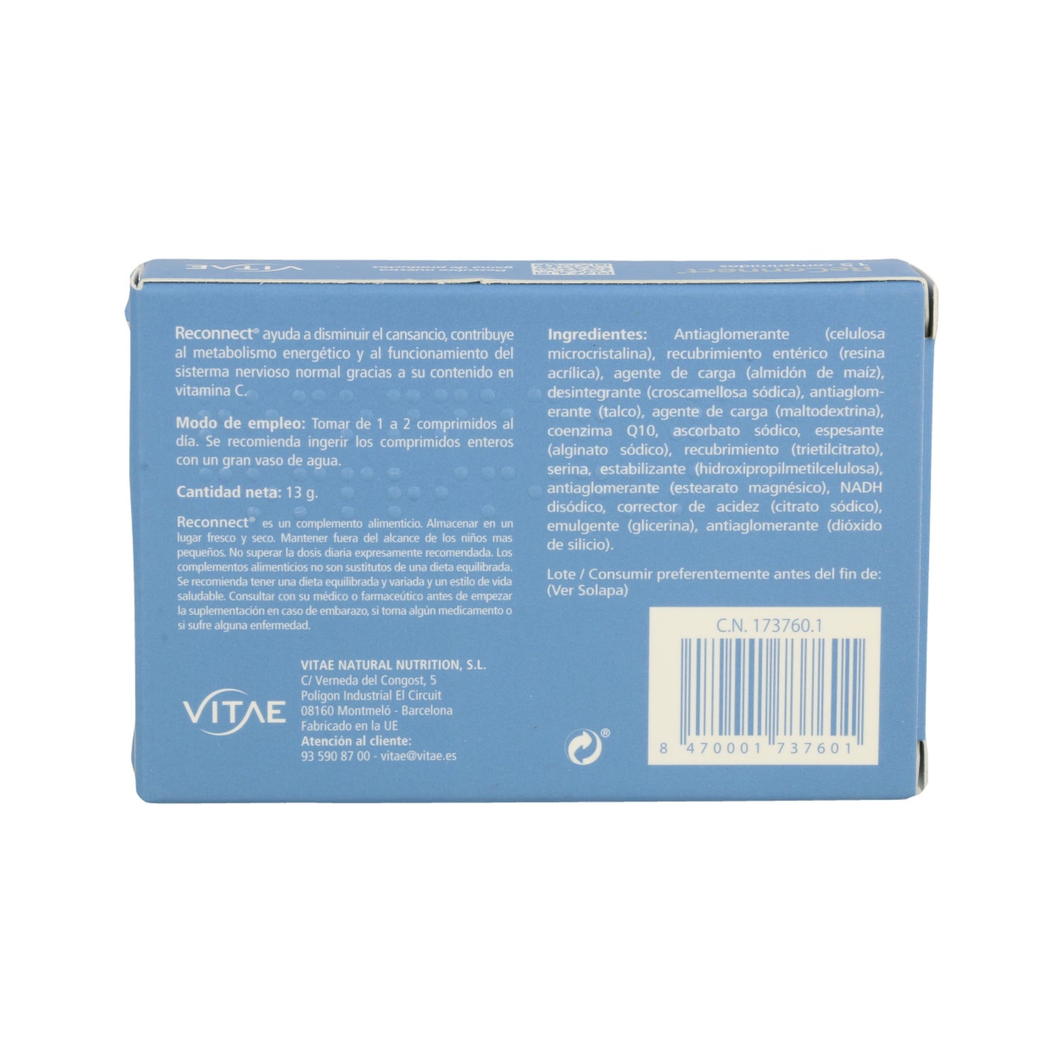 Vitae Reconnect 15comp é um suplemento alimentar formulado com NADH, coenzima Q10, serina e vitamina C que ajuda a melhorar o desempenho físico e cognitivo.