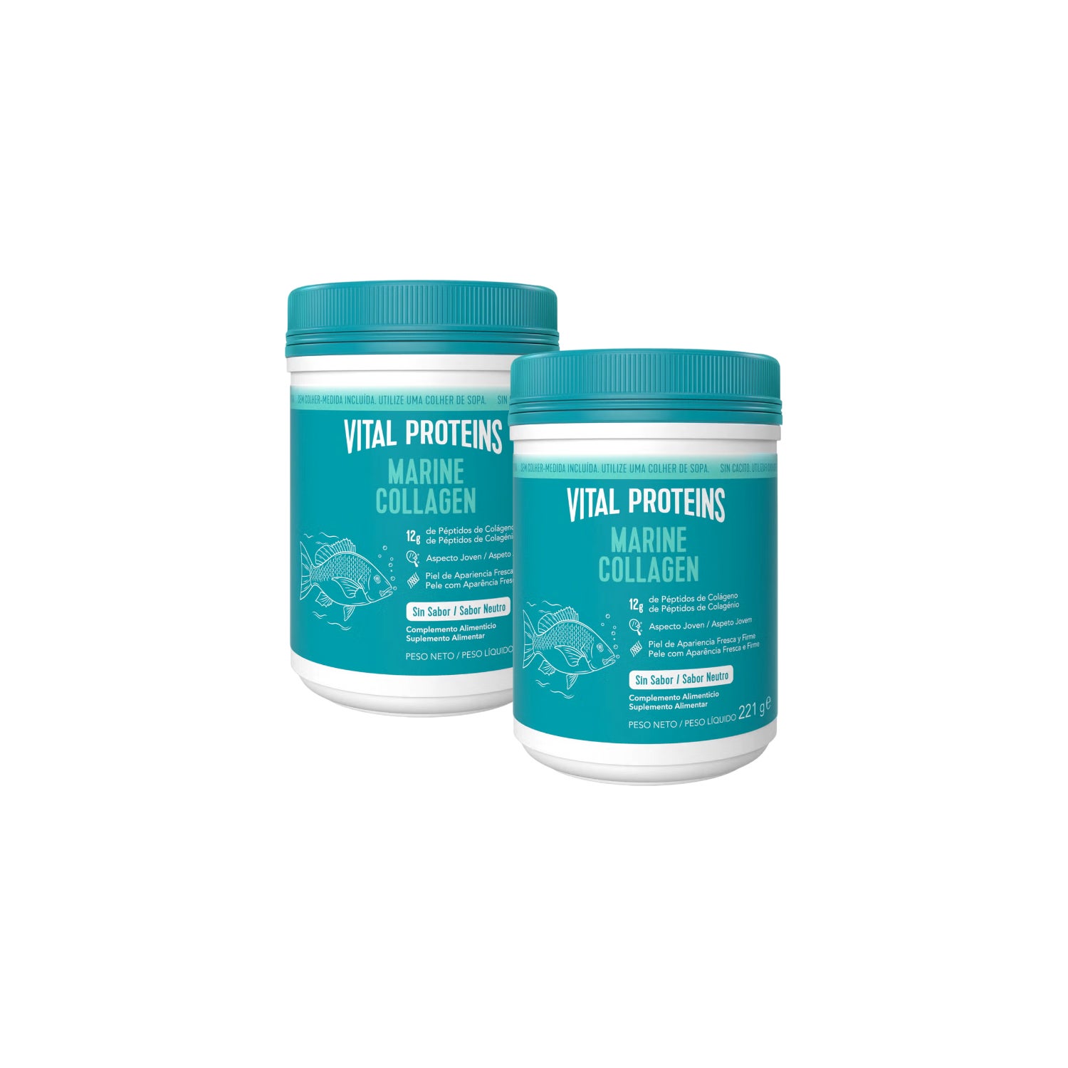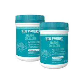 Vital Proteins Pack Marine Collagen Péptidos de Colágeno Sem Sabor 2x221g é um suplemento alimentar em forma de pós solúveis que fornece 12 gramas de colágeno hidrolisado por dose.