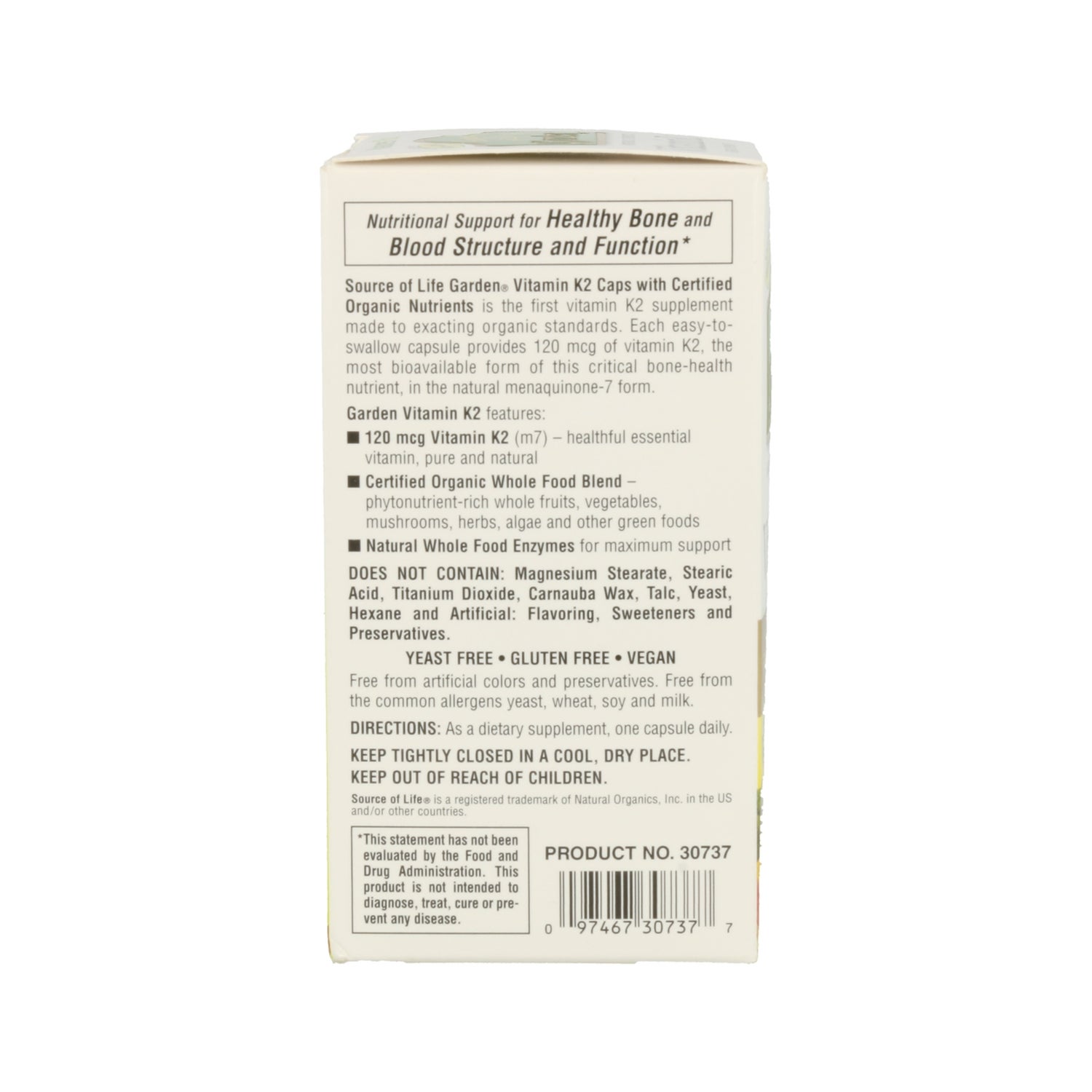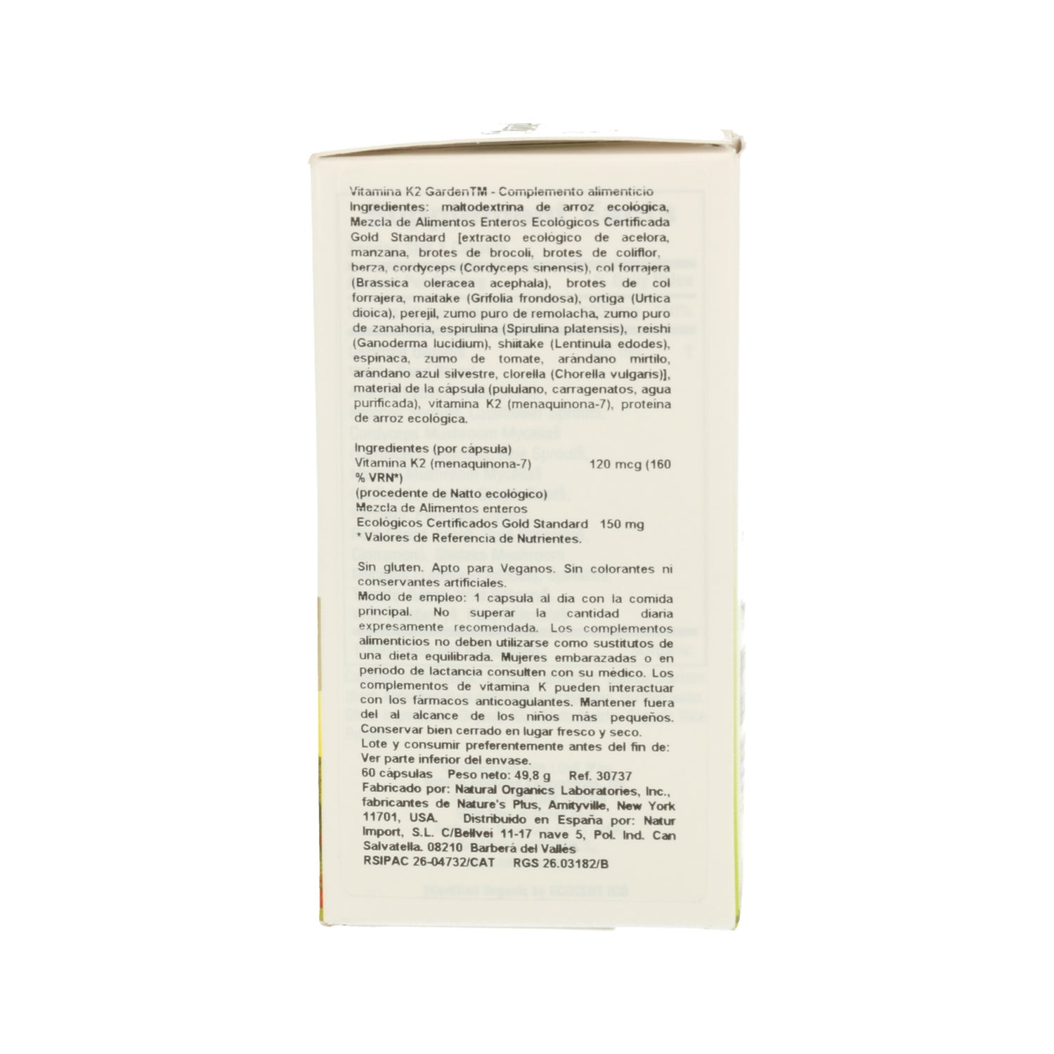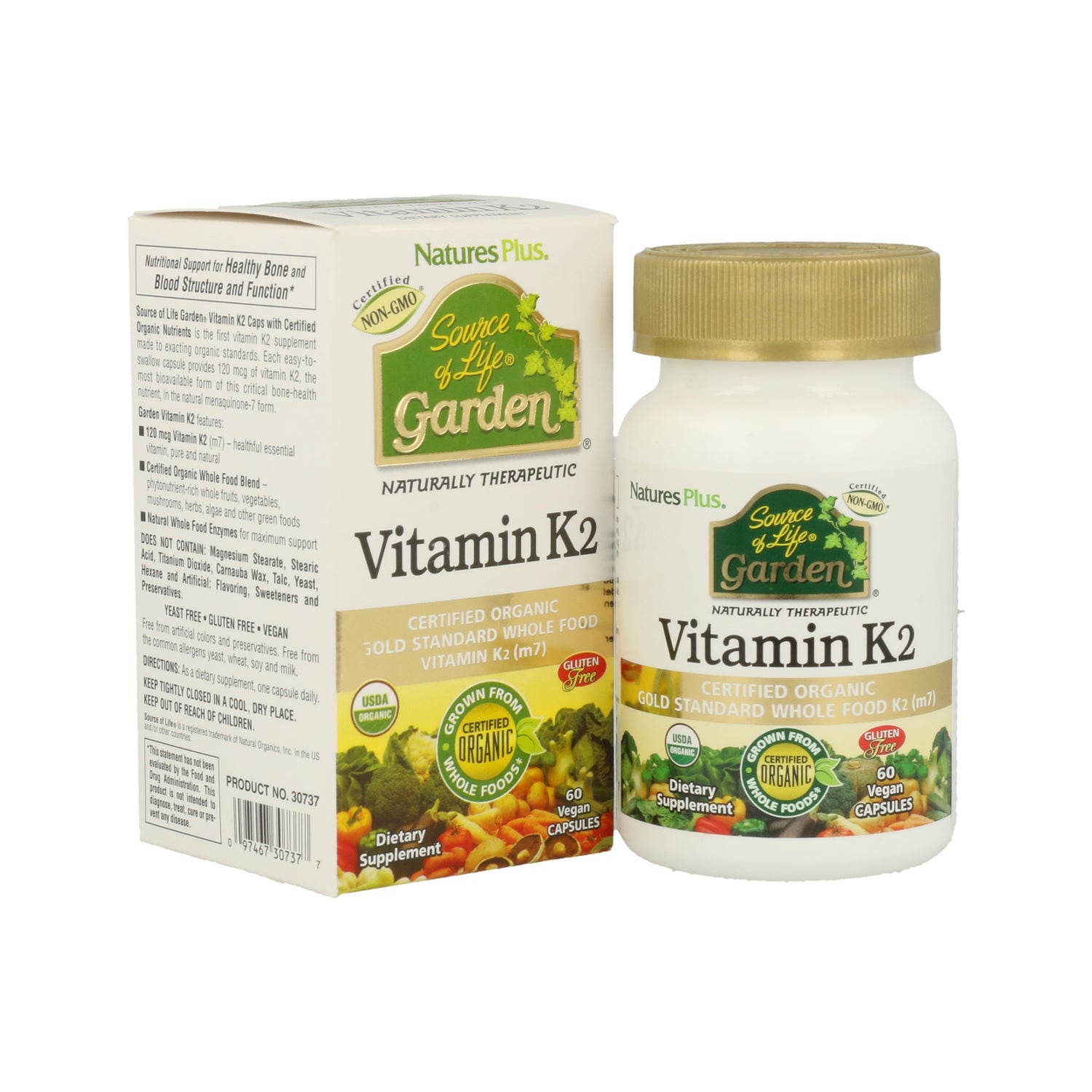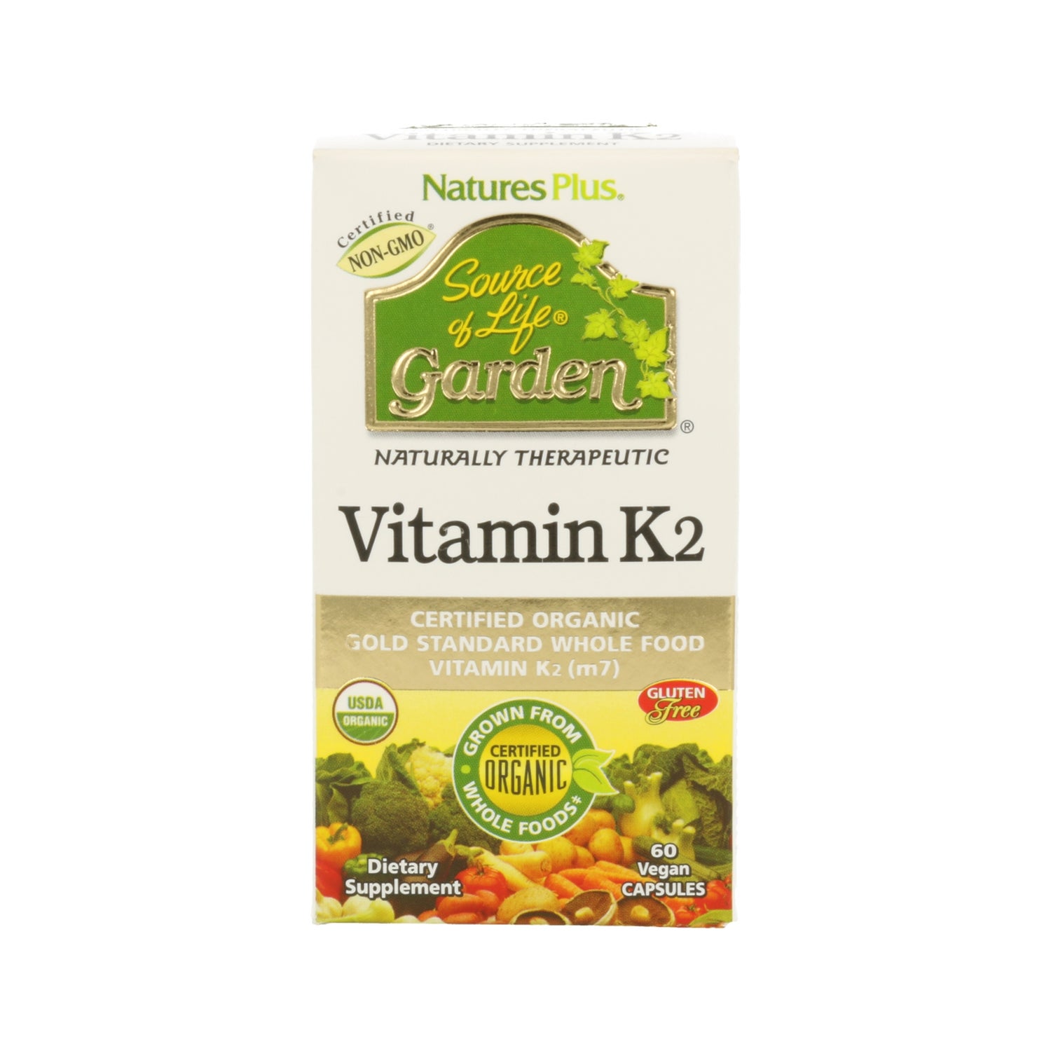 Nature's Plus Garden Vitamin K2 60comp é um suplemento alimentar orgânico de origem vegetal.