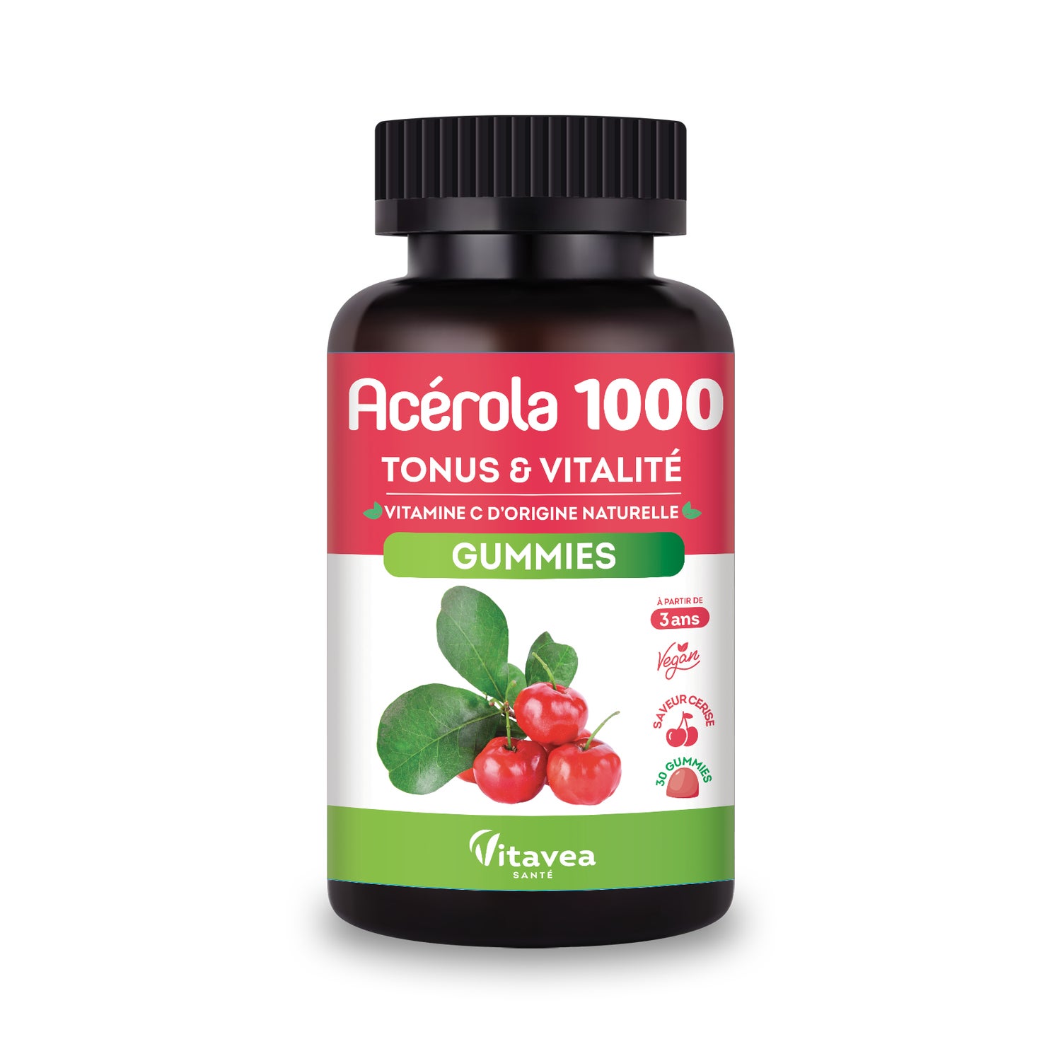 Suplemento alimentar feito de extracto concentrado de sumo de acerola em forma de pó, uma fonte natural de vitamina C. Ajuda a prevenir sentimentos de fadiga ou cansaço e a fortalecer o sistema imunitário. Ajuda a impulsionar a produção e síntese natural de colagénio. Vem num prático formato de cápsulas mastigáveis, com um agradável sabor a cereja. Adequado para veganos. Com ingredientes orgânicos certificados. Feito em França.