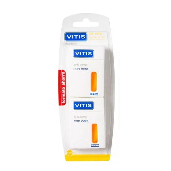 Vitis Dental Floss with Wax 2x50m é um fio dental feito com cera para reduzir eficazmente a placa bacteriana nos espaços interdentários e sob a linha das gengivas, prevenindo cáries, gengivite e doença periodontal.