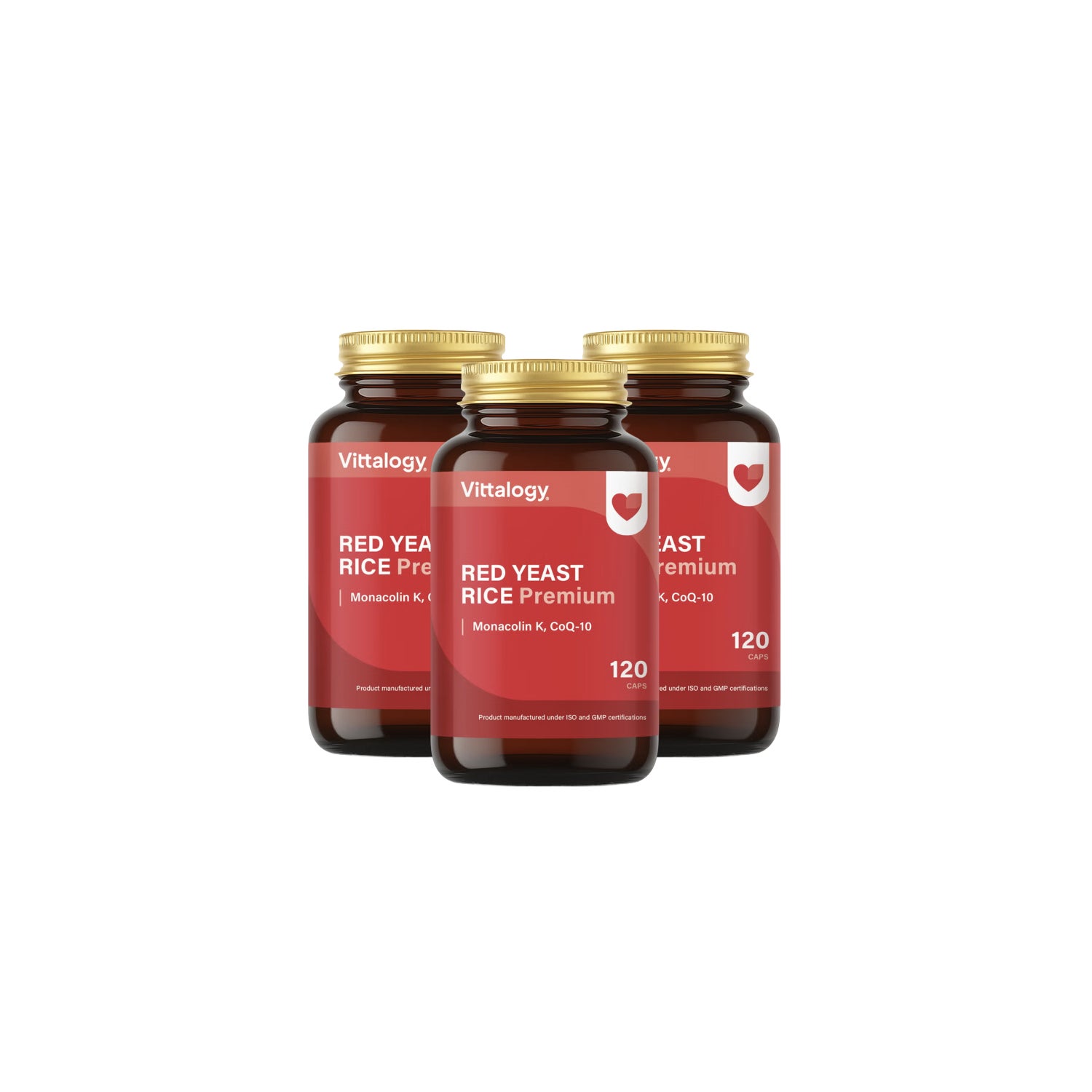 Vittalogy Red Yeast Rice Premium 3x120caps Suplemento Alimentar de Levedura de Arroz Vermelho com Coenzima Q10 para Reduzir o Colesterol.