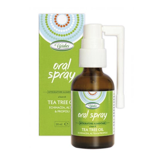 Vividus Tea Tree Oral Spray 30ml é um suplemento alimentar em formato spray à base de árvore de chá, própolis, equinácea e altea que ajuda a melhorar o funcionamento do tracto respiratório superior. Também facilita o bem-estar oral-faríngeo e promove a função da mucosa.