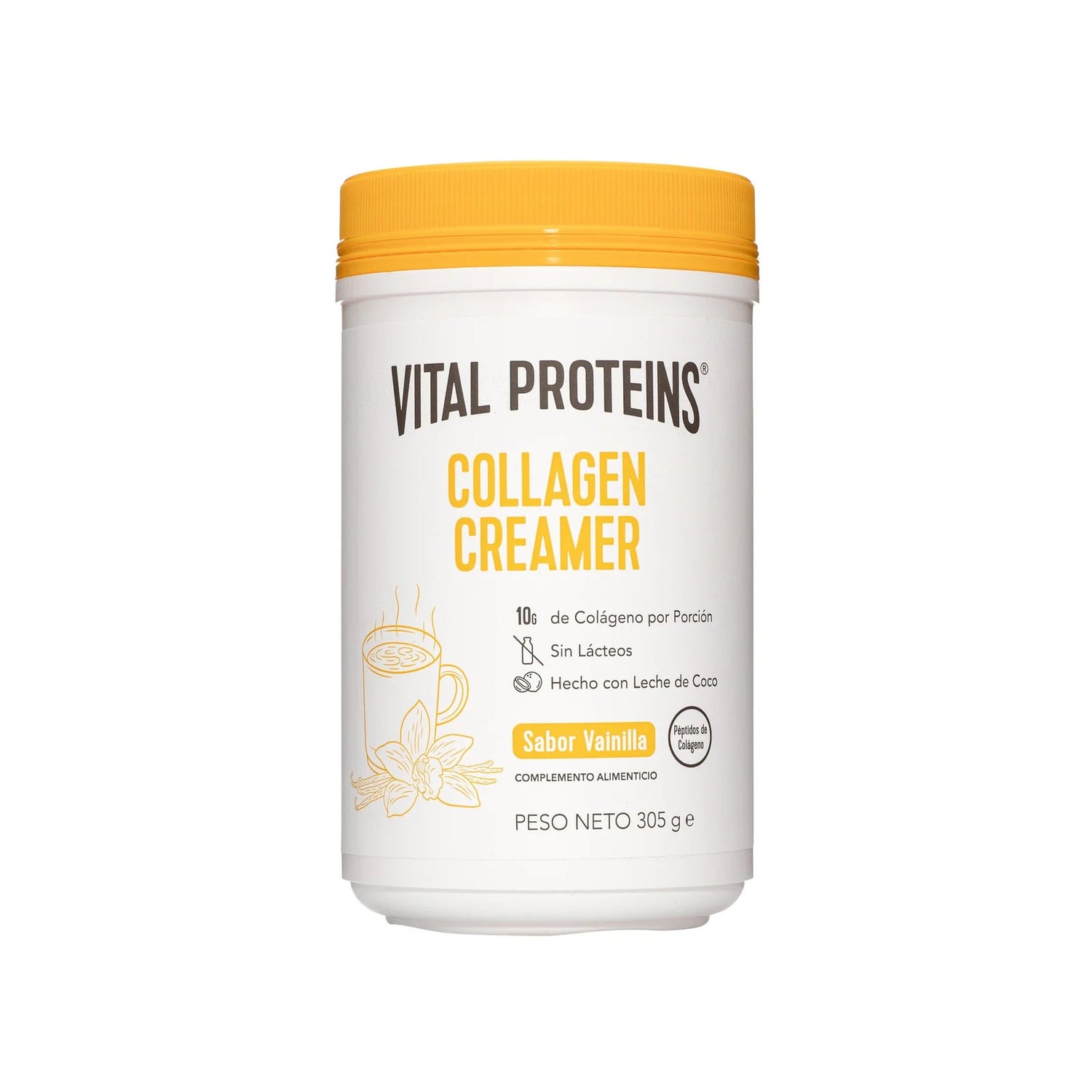 Vital Proteins Collagen Creamer Peptídeos de Colágeno Baunilha 295g é um suplemento alimentar à base de colágeno e leite de coco, que favorece o bom estado do cabelo, da pele, das unhas e das articulações.