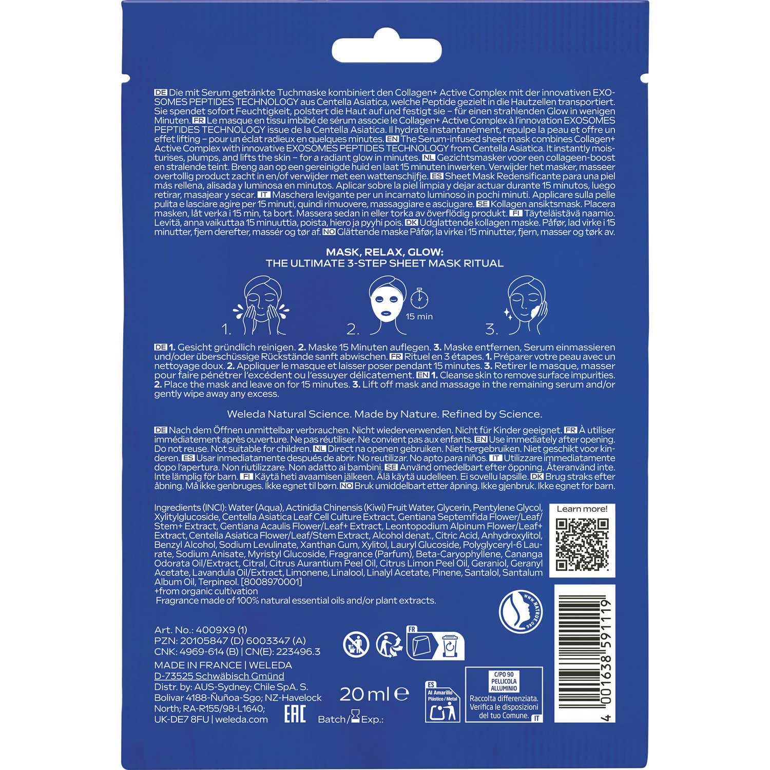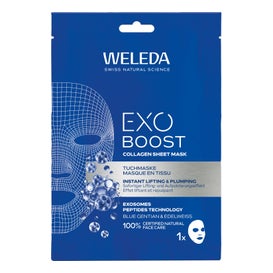 Weleda Exo Boost Collagen Sheet Mask 20 ml é uma máscara de tecido para cuidado intensivo antienvelhecimento. Oferece um tratamento expresso que: