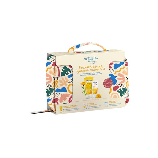 Weleda Necessaire Baby Pequenos Heróis Grandes Cuidados para o cuidado diário da pele do bebê é um pacote para a rotina diária de higiene e troca de fraldas. Inclui: