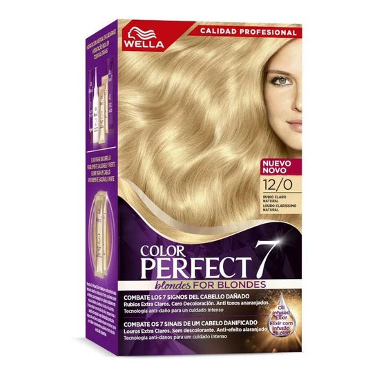 Wella Color Perfect 7 100% Grey Coverage Kit 12/0 Natural Light Blonde é uma cor de cabelo semi-permanente que ajuda a adicionar cor ao cabelo, proporcionando ao mesmo tempo uma cobertura cinzenta completa. A sua formulação também ajuda a preservar a humidade natural do cabelo. Sombra loira clara. O kit inclui: creme de coloração, reactivador de cor, óleo, creme de revelação e um par de luvas.