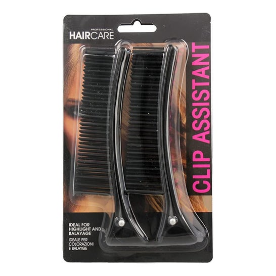 Pinça com pente, um acessório especialmente desenvolvido para ajudar a separar áreas de cabelo. A secção das pinças de uma parte do cabelo e as pinças seguram firmemente outras partes do cabelo sem danificar o penteado e sem o marcar