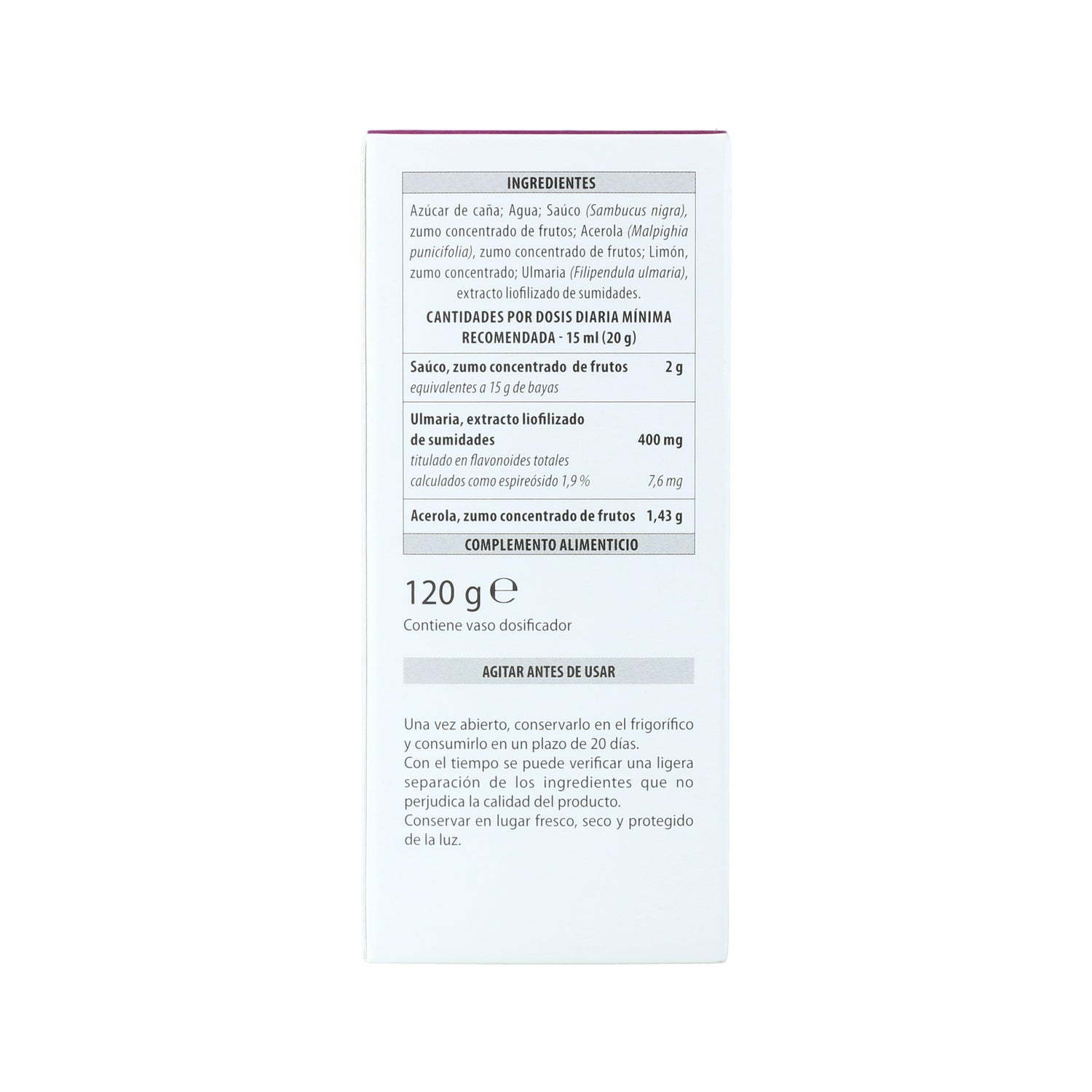 Aboca Influvis Syrup 120g é um suplemento alimentar com uma acção sinérgica de sumo de sabugueiro concentrado, extracto liofilizado de topo de filipêndula e sumo concentrado de acerola, que fortalecem o sistema imunitário.