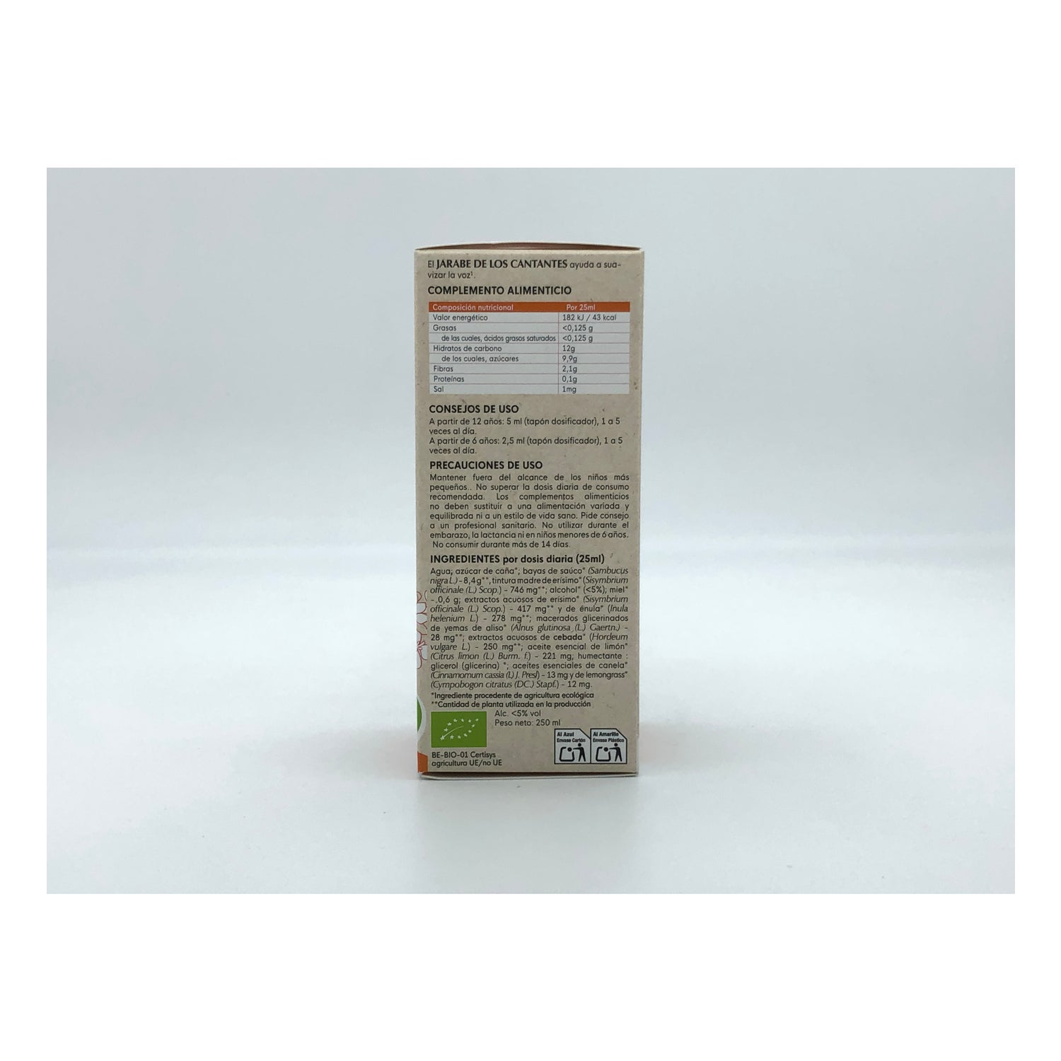 Elaborado com ingredientes de origem vegetal como o limão, o mel e o xarope de sabugueiro. Recomendado para acalmar a garganta e em caso de irritação das cordas vocais ou afonia.
