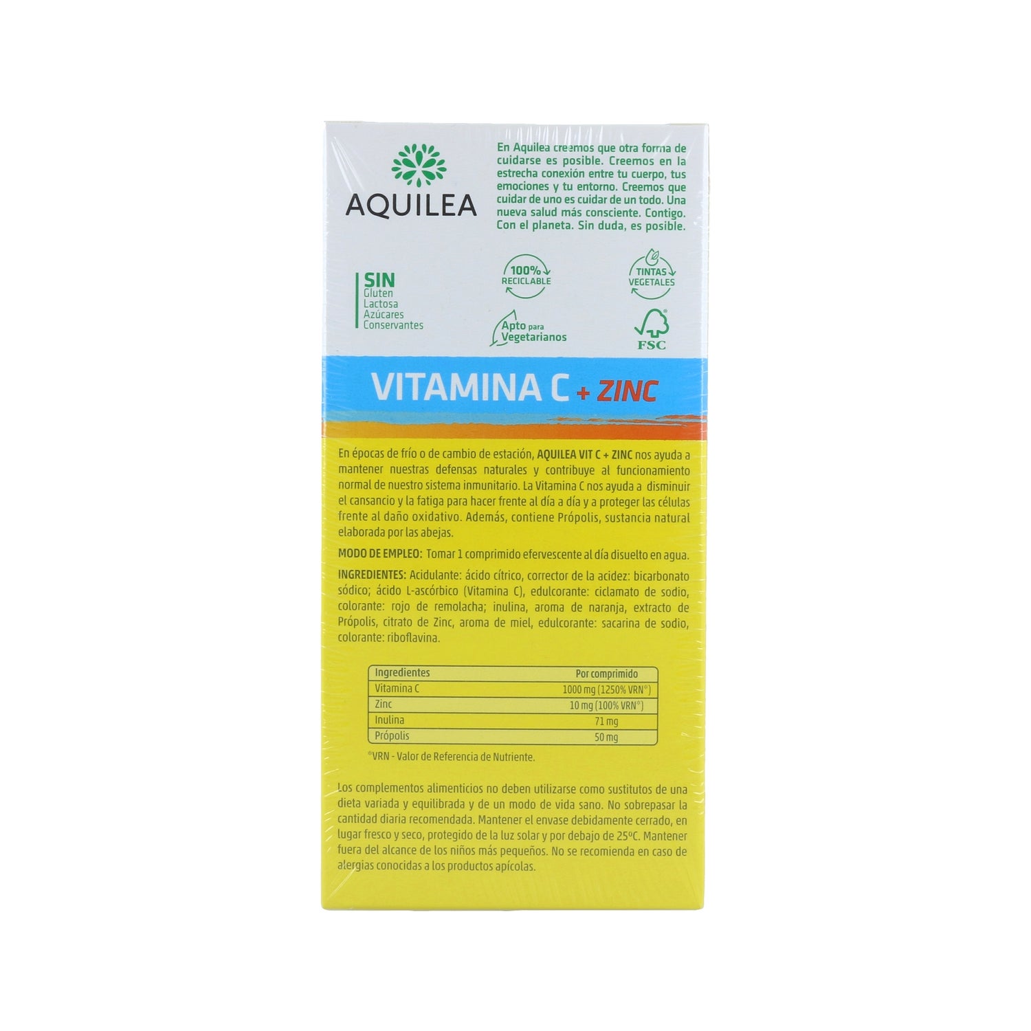 Aquilea Vitamina C + Zinco 28comp é um suplemento alimentar que ajuda a reduzir a fadiga diária e fortalece o sistema imunitário .
