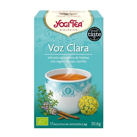 O chá de voz clara do Yogi Tea combina 5 aromas diferentes: alcaçuz, mulleína, canela, casca de laranja e funcho. Indicado para esclarecer a voz, por isso é ideal em épocas de inverno ou para momentos de afonia.