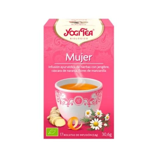 Yogi Tea Women's Infusion contém uma combinação aromática de ervas e especiarias para ajudar o equilíbrio das mulheres. Mistura gengibre, casca de laranja, raiz de angélica e especiarias ayurvédicas que contribuem para a harmonia nos ciclos naturais da vida. A essência desta infusão é "Compaixão Profunda".