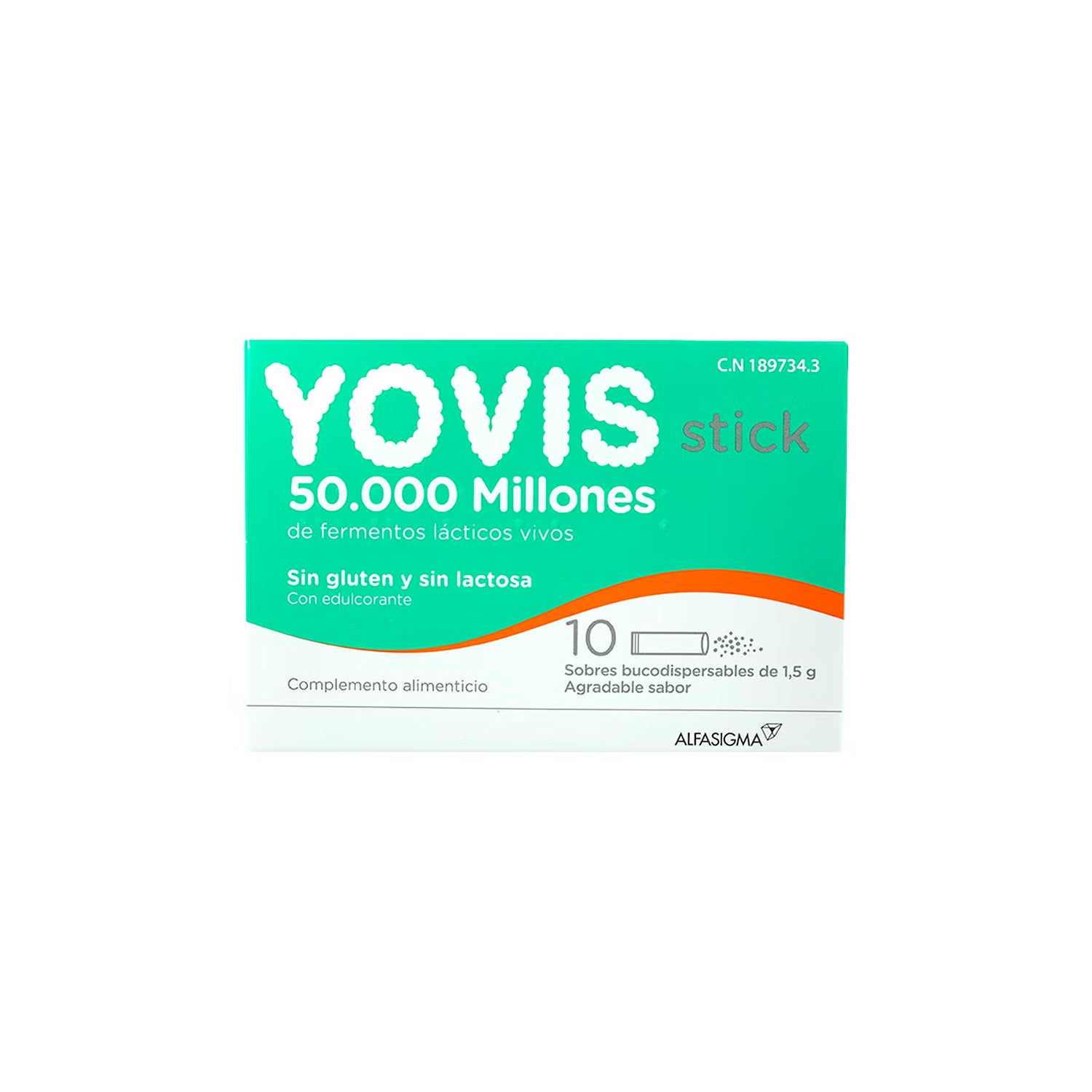 Yovis Probiótico 10 sticks é um complemento alimentar em formato de sticks à base de fermentos lácticos para o cuidado da saúde digestiva.