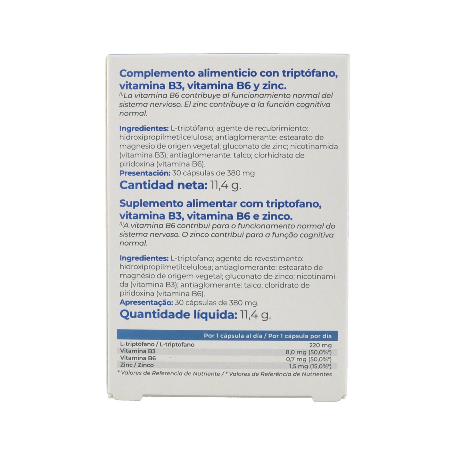 Inovance Serotone 30caps é um complemento alimentar à base de triptofano, vitaminas B3-B6 e zinco.
