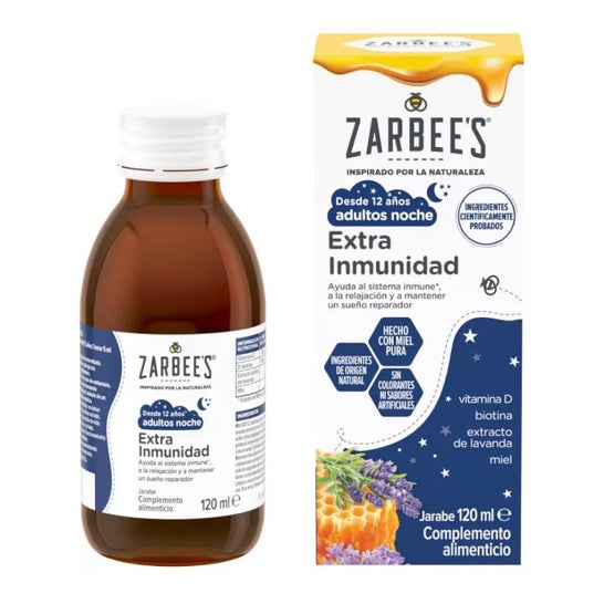 Zarbee's Adult Night Extra Immunity Syrup 120ml é um xarope para adultos que ajuda a apoiar o sistema imunitário e a ajudar a dormir.