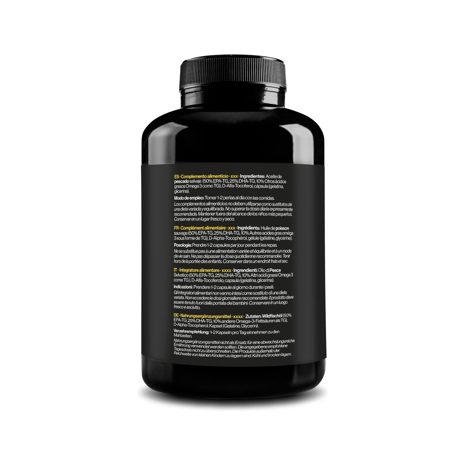 Omega 3 Premium em forma de triglicerídeos garante máxima absorção e eficácia com 1000 mg de EPA e 500 mg de DHA por dose (2 cápsulas). Utilizamos óleo de peixe selvagem certificado pela Friends of the Sea (FOS) para um produto puro e sustentável. Nossas cápsulas moles são fáceis de engolir e foram projetadas para proteger as propriedades do óleo de peixe. - Triglicerídeos para melhor absorção. - Alta potência de EPA e DHA. - Óleo de anchova certificado FOS.
