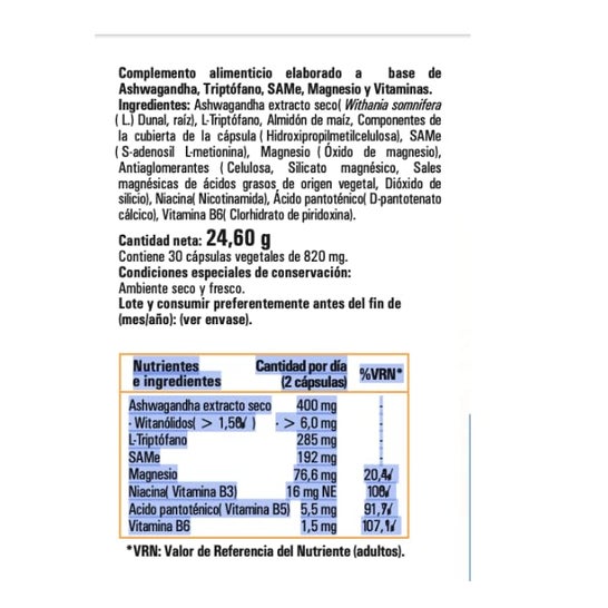 Um suplemento alimentar à base de Rhodiola, triptofano, SAMe, magnésio e vitaminas
