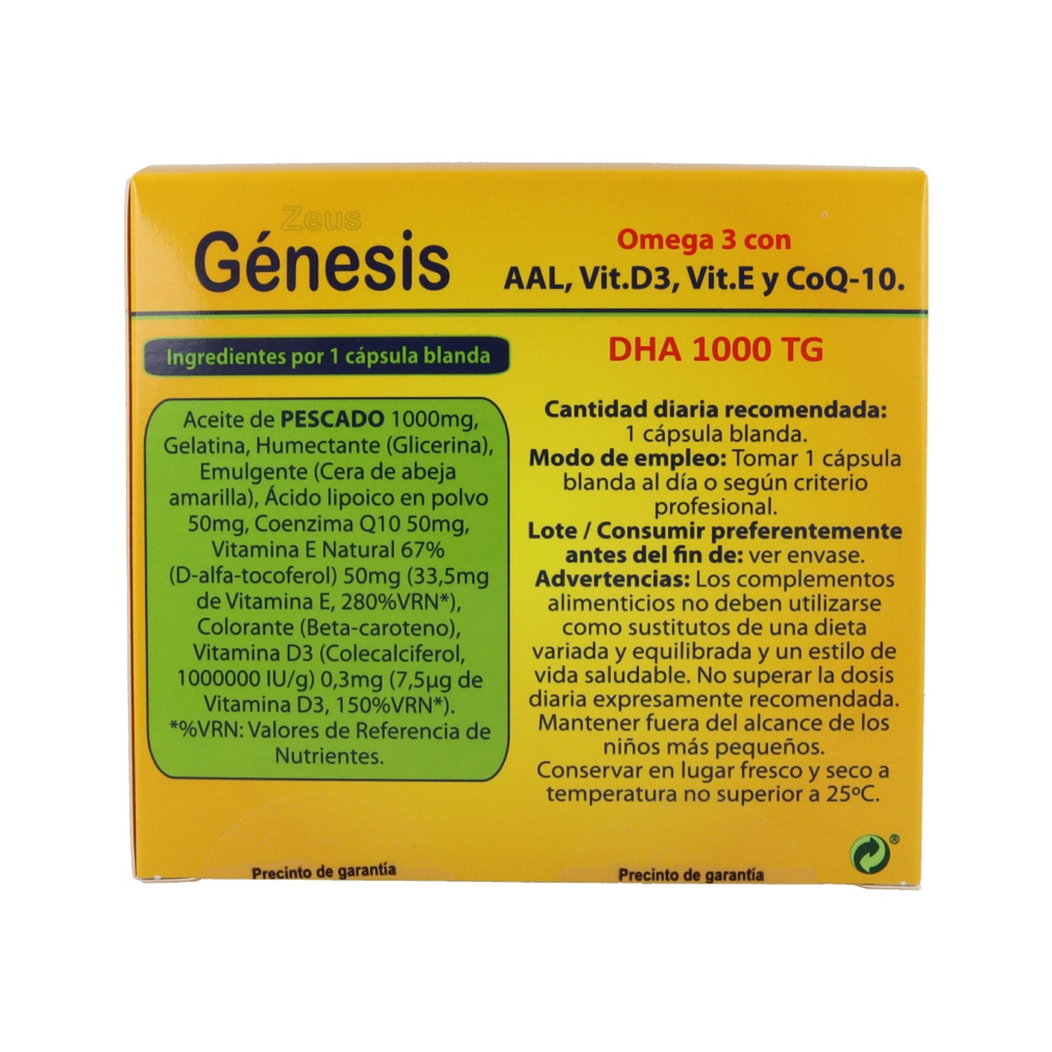 Suplemento alimentar multivitamínico 120 cápsulas. Este produto Zeus ajuda a manter uma boa saúde e aumenta a produtividade do sistema imunitário. É um suplemento que ajuda a melhorar as perturbações relacionadas com o cérebro, a visão e o sistema cardiovascular em geral. Também pode ajudar nos distúrbios relacionados com a fertilidade, tanto em homens como em mulheres, e controla os processos inflamatórios. A sua fórmula foi especificamente concebida para atingir a eficácia do produto. Contém óleo essencial de ómega 3, ácido alfa-lipóico, coenzimas e vitaminas E e D.