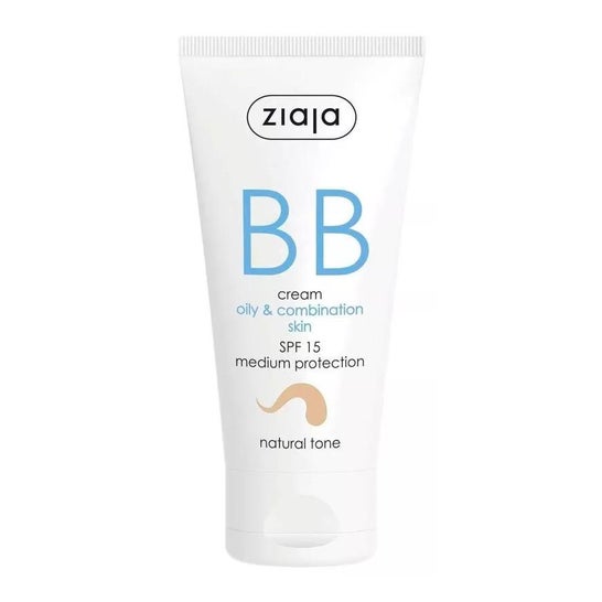 Ziaja Bb Cream for Oily and Combination Skin Spf15 Natural Tone, BB cream para pele oleosa e mista com ácido oleanólico, vitamina B3, ácido hialurónico, provitamina B5, vitaminas E, C, filtros UV e pigmentos minerais. Ajuda a deixar a pele uniforme e suave, reduzindo e escondendo pequenas imperfeições. Pode substituir a base. Proporciona uma proteção SPF15 contra a exposição solar. O resultado é uma pele hidratada, regenerada, homogénea e suave. Indicado para peles oleosas e mistas.