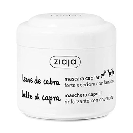 Máscara capilar com ingredientes que ajudam a restaurar cabelos danificados e danificados causados por tinturas ou agentes externos. Ajuda a hidratar e a dar brilho graças à queratina e às proteínas do leite de cabra.