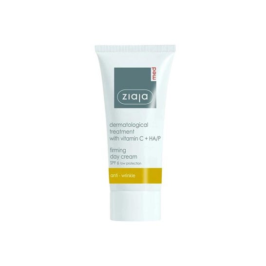 Ziaja Med Firming e Antioxidant Day Cream SPF6 50ml é um tratamento facial que ajuda a firmar a pele e a reduzir a visibilidade dos sinais de envelhecimento. É particularmente adequado para peles que perderam alguma da sua elasticidade e têm manchas de pigmentação