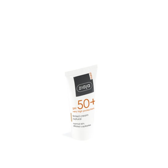 Ziaja Med Creme Protector Facial SPF50+ Cor Natural 50ml é um creme facial que ajuda a proteger a pele facial da acção nociva dos raios UVA e UVB graças aos seus filtros fotoestáveis SPF50+