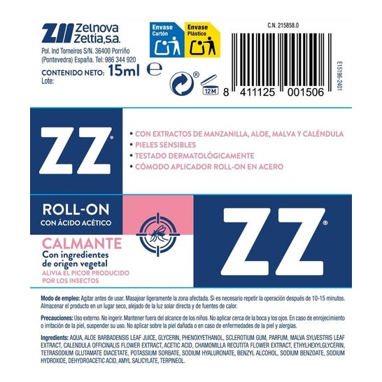Zz Roll-On Soothing 15 Ml é um produto em formato roll-on com amoníaco, especialmente concebido para aliviar imediatamente a irritação causada por picadas de insectos. Esta fórmula hipoalergénica é fácil e confortável de aplicar na pele afetada.